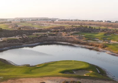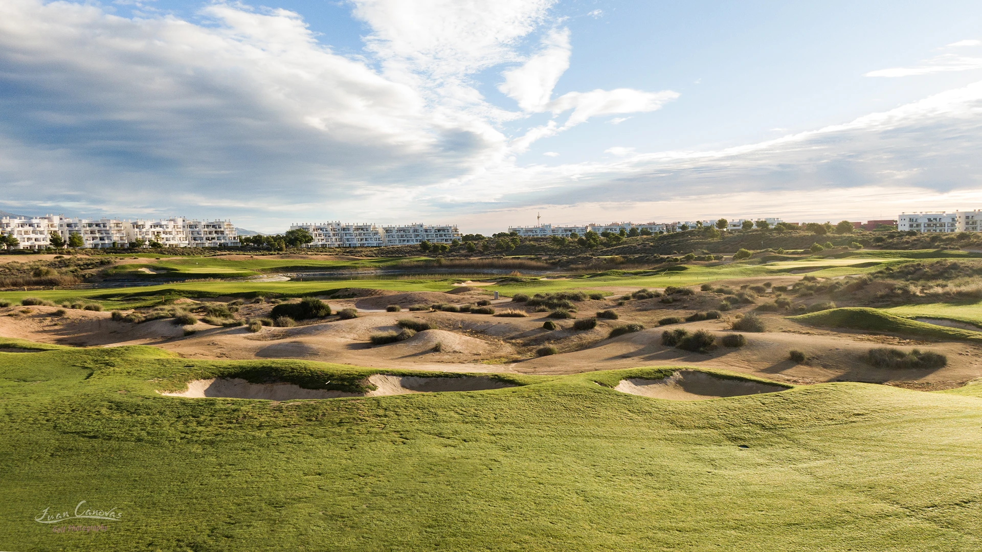 El objetivo de este proyecto fotográfico fue resaltar el contraste entre el verde vibrante de las calles (fairways) y el entorno natural de la Región de Murcia. Al ser un campo «Signature», cada detalle ha sido supervisado por el «Oso Dorado», lo que se traduce en: